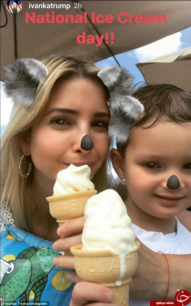 «ایوانکا ترامپ»، دختر «دونالد ترامپ»، رئیس جمهور آمریکا به مناسبت روز ملی بستنی یک عکس از خود و پسرش در اینستاگرام منتشر کرد.
