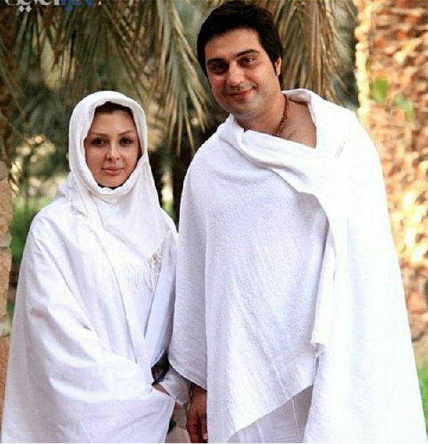 نیوشا ضیغمی همراه با همسرش در لباس احرام