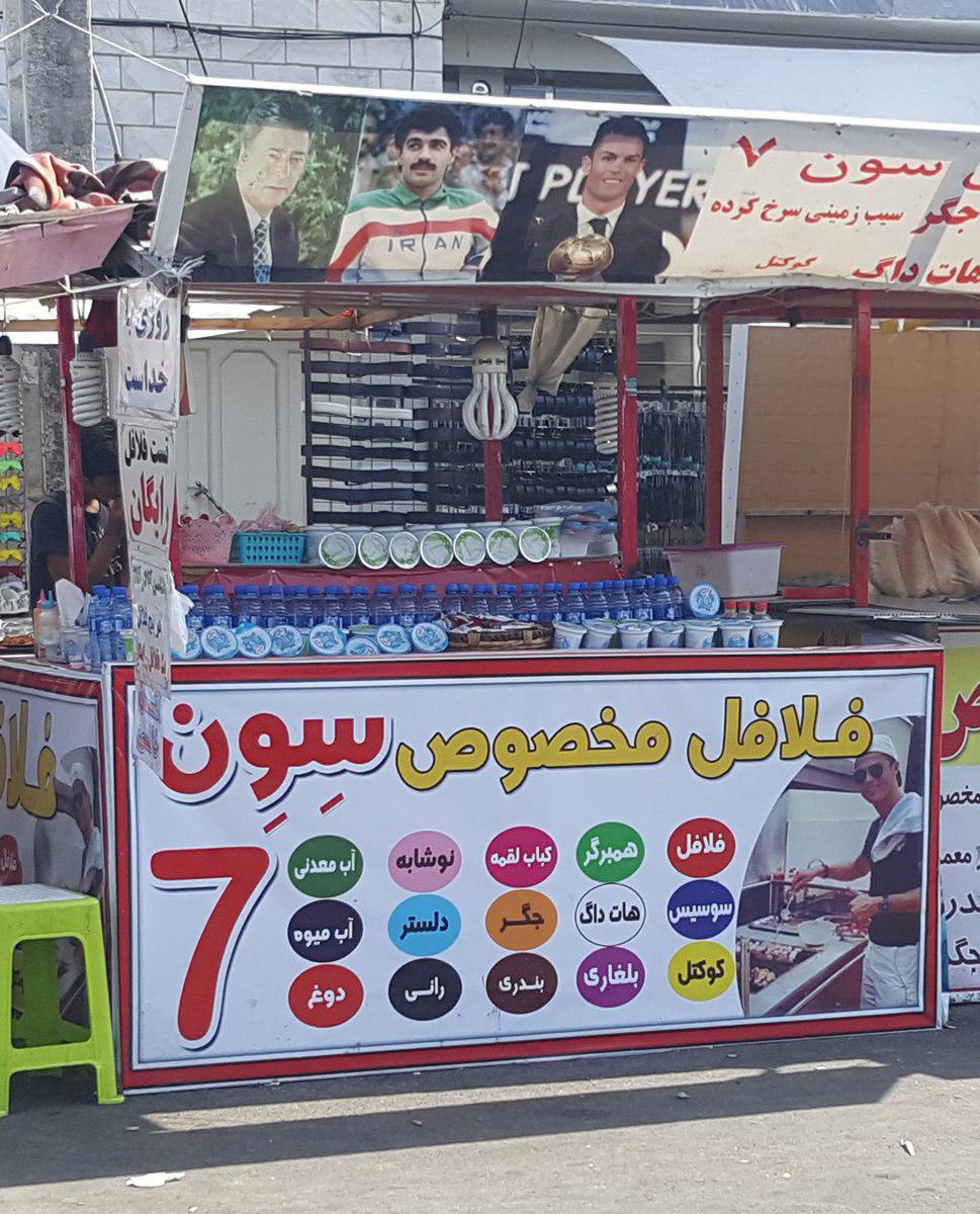 روزنو :یک فروشنده فلافل که به چهره های فوتبالی از جمله رونالدو،سیروس قایقران و ناصر حجازی علاقمند است محل کسب و کار خود را با عکس این فوتبالیست ها تزیین کرده است.