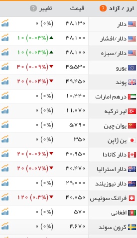 دلار آمریکا مشابه روز گذشته با قیمت ۳ هزار و ۸۱۳ تومان در بازار به فروش رسید. یورو اروپا ۴ هزار و ۵۵۳ تومان، پوند انگلیس ۴ هزار و ۹۴۵ تومان و لیر ترکیه هزار و ۱۰۷ تومان است.