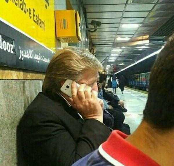 فرد ایرانی شبیه به ترامپ در متروی تهران ایستگاه میدان انقلاب به سمت ایستگاه کلاهدوز، مشغول مذاکره با تلفن است!