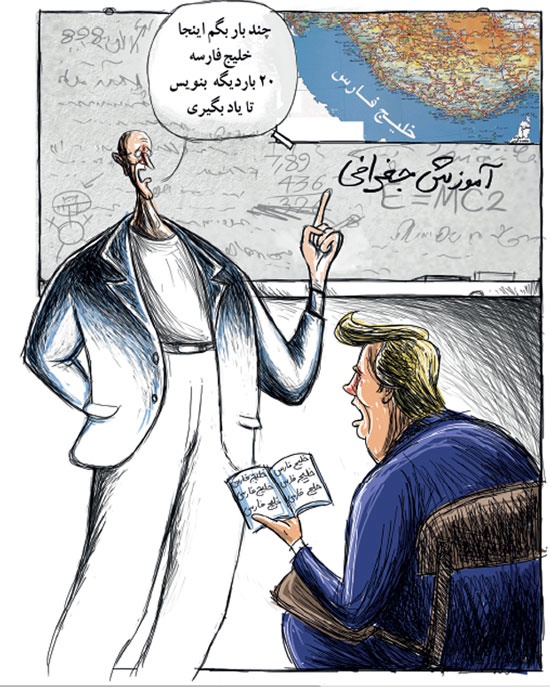 در حاشیه اظهارات مضحک ترامپ درباره خلیج فارس، رضا جنگی این کارتون را در اعتماد منتشر کرد.