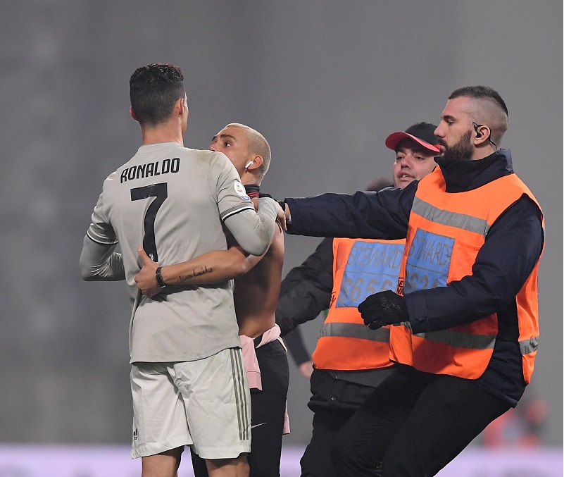 روزنو :ورزش سه:در جریان پیروزی 3-0 یوونتوس مقابل ساسولو درهفته بیست و سوم سری A، یک جیمی جامپ خود را به زمین رساند و سریع به سراغ کریستیانو رونالدو رفت تا لحظاتی جالب در دوربین‌ها ثبت شود.