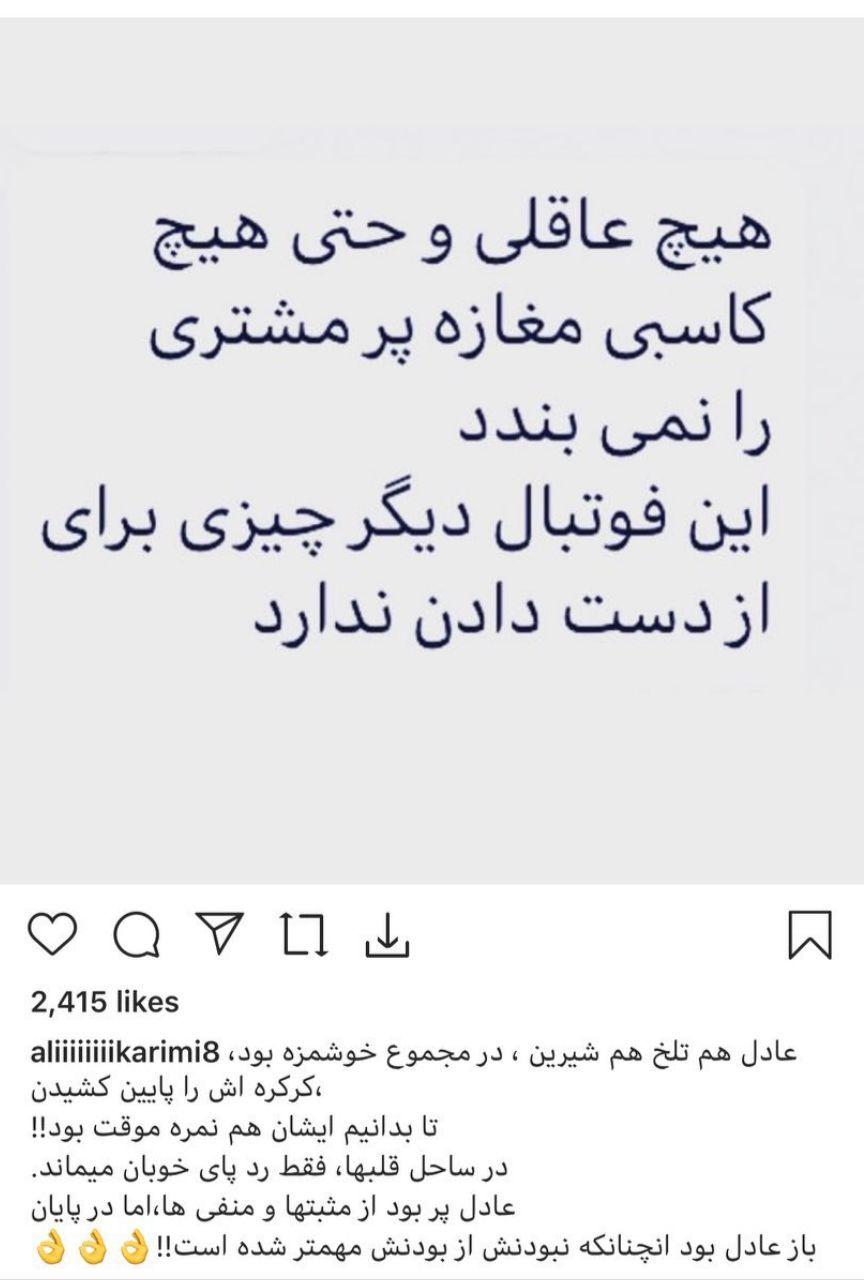 پیام تند و معنا دار علی کریمی در حمایت از عادل فردوسی پور