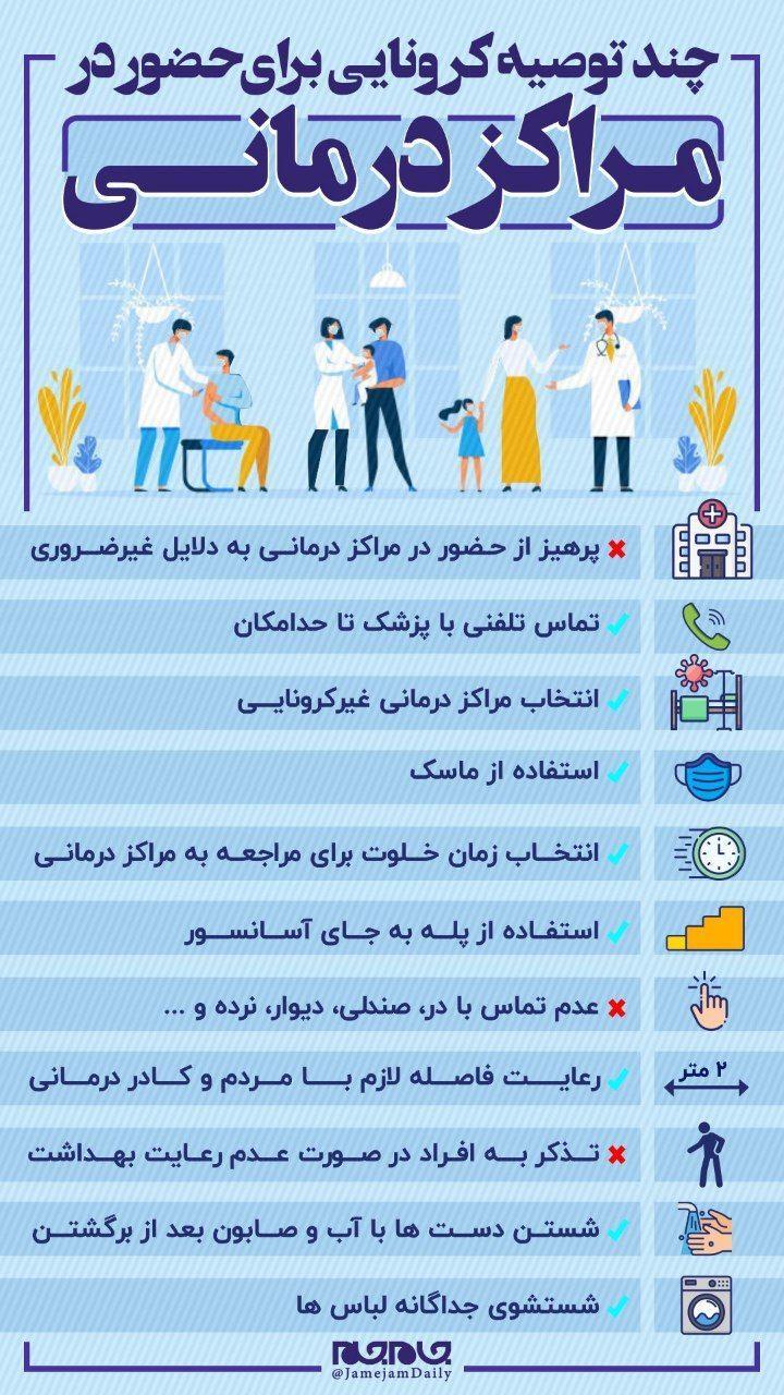چند توصیه کرونایی برای حضور در مراکز درمانی + اینفوگرافیک