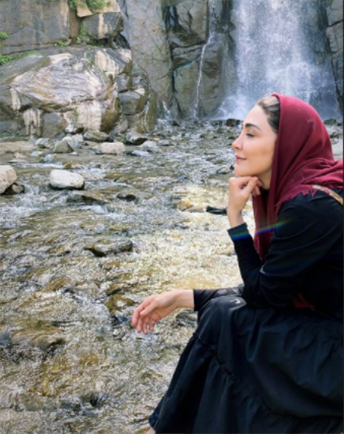 ریلکسیشن مریم معصومی در کنار آبشار زیبا +عکس