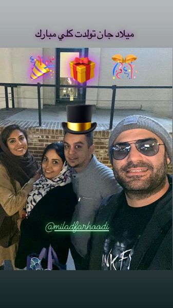 عکسی که حدیثه تهرانی با همسرش ودوستانشان در صفحه اینستاگرامش منتشر کرده است.
