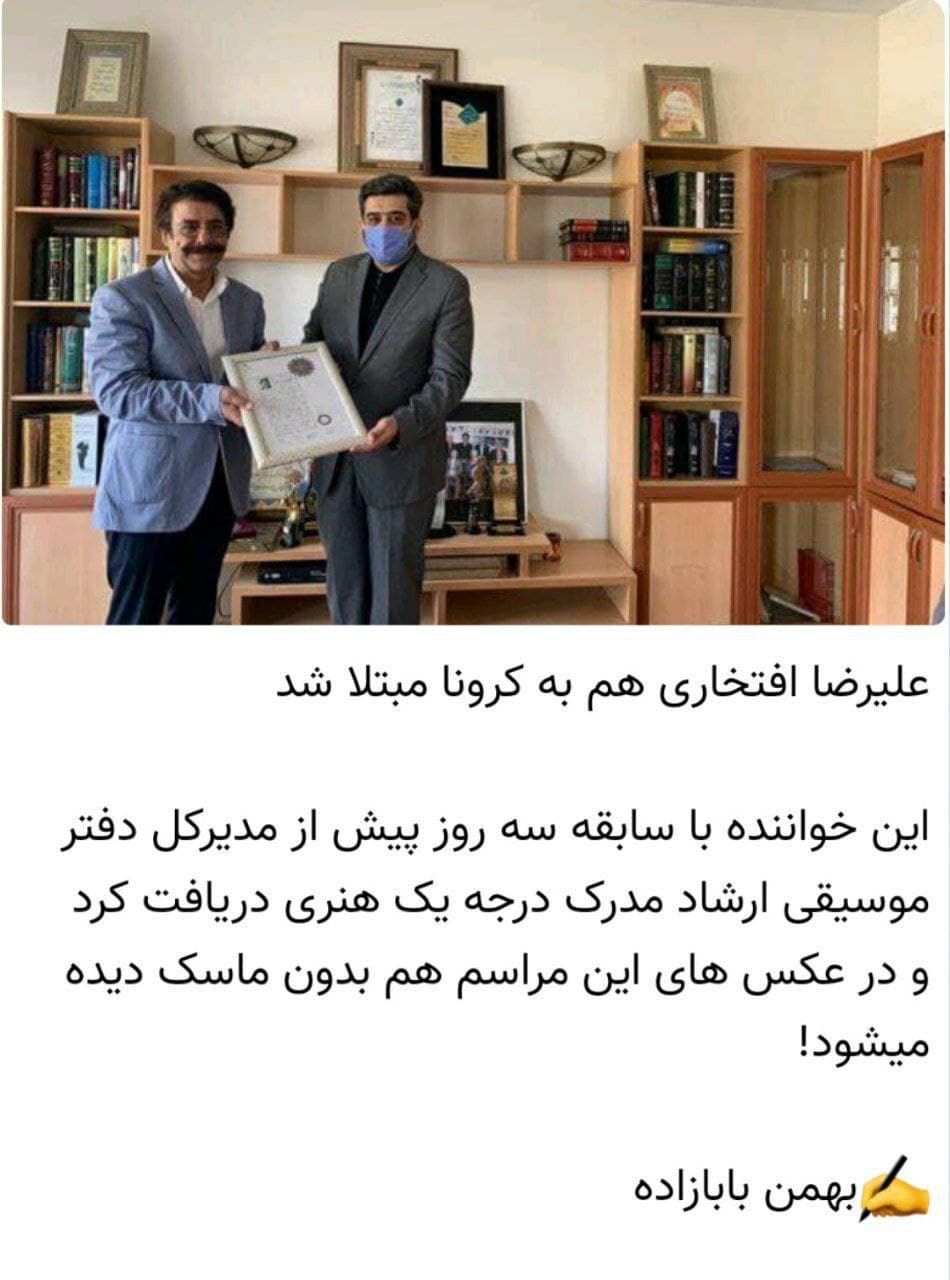 روزنو :علیرضا افتخاری ،خواننده سبک سنتی ایرانی که از سال ها قبل در این عرصه فعالیت داشت و هنرمند محبوب کشورمان است،به کرونا مبتلا شد.