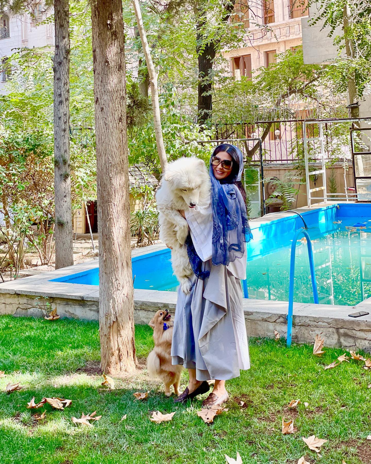 مریم معصومی در کنار استخر و سگی در آغوش + عکس