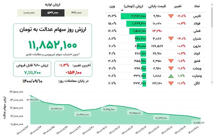 ارزش سهام عدالت، امروز ۱۰ آذر ۱۴۰۰