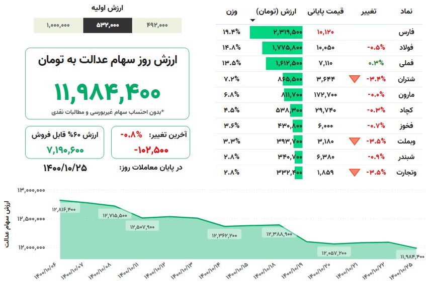 ارزش سهام عدالت، امروز ۲۵ دی ۱۴۰۰