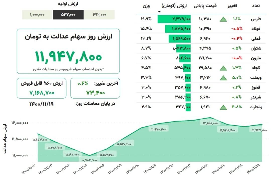 ارزش سهام عدالت، ١٩ بهمن ۱۴۰۰