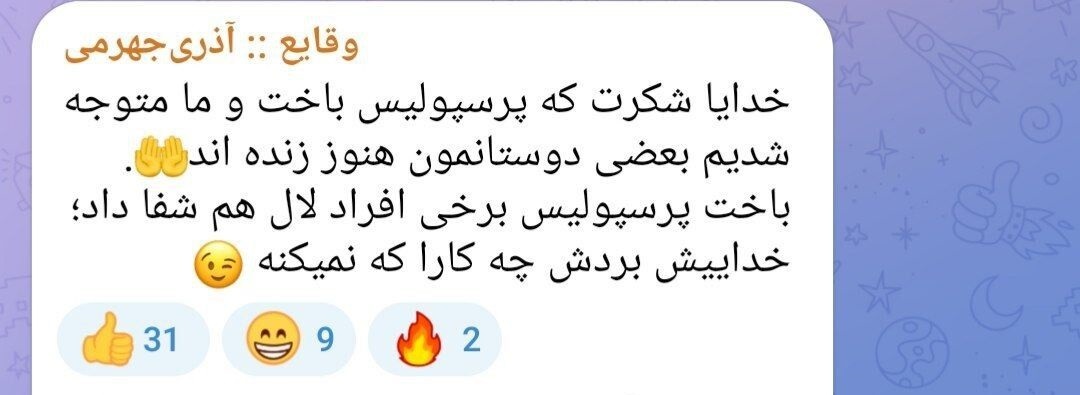 پرسپولیس موفق نشد از پس الدحیل در ورزشگاه آزادی بربیاید و بعد از شکست مقابل این تیم، از آسیا حذف شد. حالا آذری جهرمی که همیشه کری خوانی های زیادی در فضای مجازی به عنوان هوادار پرسپولیس با باقی افراد دارد، به این شکست واکنش نشان داد.