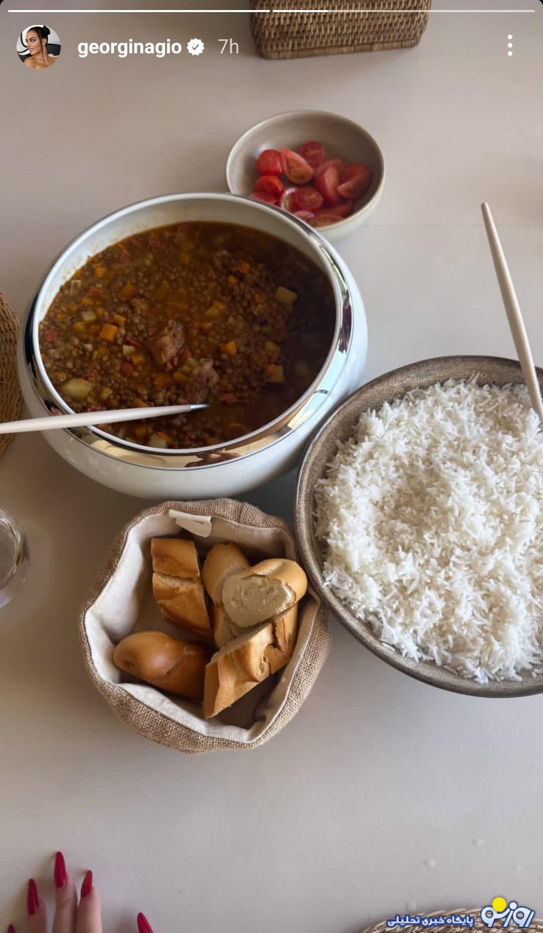 روزنو :جورجینا، همسر رونالدو تصویری در حال خوردن خورشت و برنج ایرانی در استوری اینستاگرام خود منتشر کرد که مورد توجه کاربران ایرانی قرار گرفت.