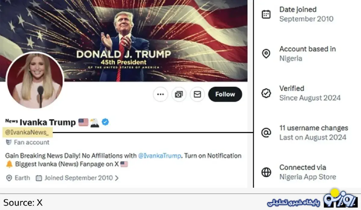با این حال، بر اساس داده‌های ایکس، این حساب در نیجریه قرار دارد و نام کاربری آن از سال ۲۰۱۰ تاکنون ۱۱ بار تغییر داده است!