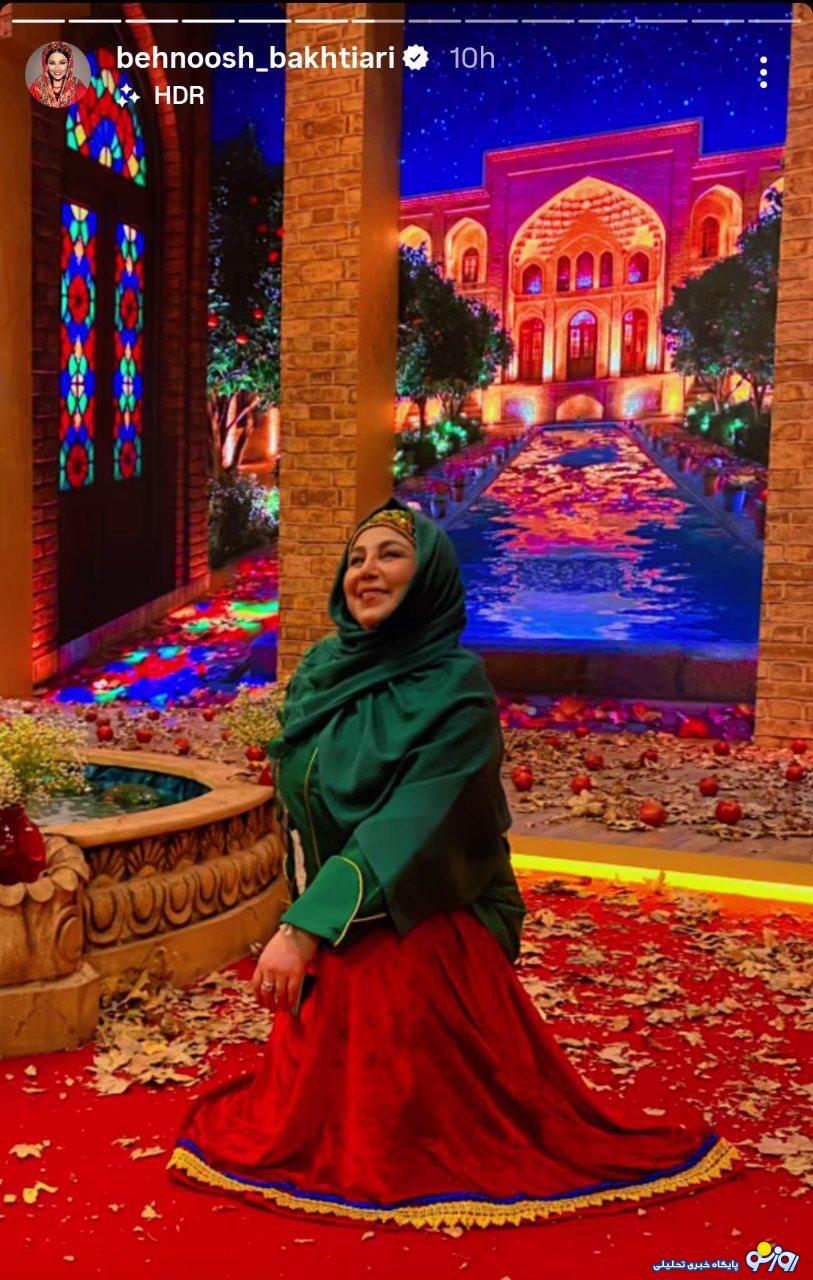 استایل یلدایی بهنوش بختیاری در ویژه‌برنامه تلویزیونی شب یلدا جلب توجه کرد.